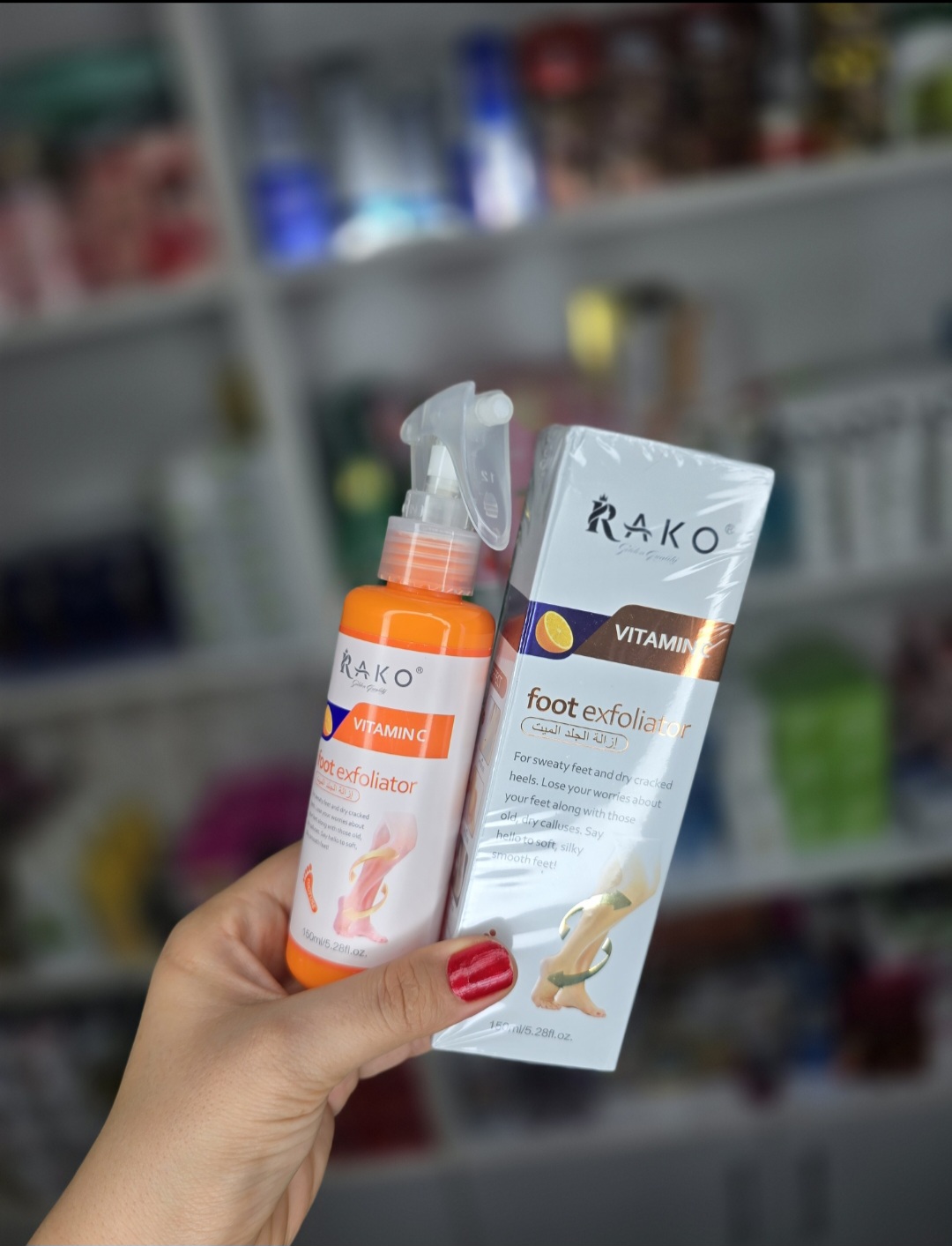 🟪علاوه بر پوست پا، اسپری راکو جهت سایر نواحی بدن که پوست ضخیم دارند مناسب است. با این اسپری می توان پوست آرنج، زانو و غوزک پا را لایه برداری کرد